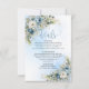Lovely Dusty Blue Floral Gold Wedding Info Card OSA Kort