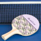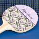 This lovely vintage look ping pong paddle features delicate purple orchids scattered across a vintage creamy ecru and white harlequin pattern. The lovely orchids provide a retro, feminine feel against the creamy wallpaper-like background. This would make a nice gift for a ping pong player who likes to garden or loves retro purple florals.