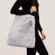 En korskroppspåse som ser ut som en hund grå varma vita päls.