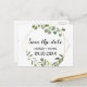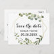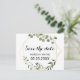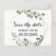 Den här tropiska grönten lämnar spara datumkortet är perfekt för ett målbröllop. Utformningen har handmålade vackra löv för grönt, som lägger till ett guld-geometriskt ram.