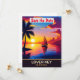 Lover Key spara datum bröllopsinbjudan, rese vykort. Segelbåt på vattnet nära kusten, palmer, vacker sommarsolnedgång i levande färger.