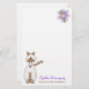 Fantastiskt personligt papper med söt tecknad som bilder av ett kattunge, i det nedre lämnat hörnet och en lila blomma, i det övre högerna av papprare. Lila och brun text, i grund är redot att anpassa sig för att läsa vad du vill.