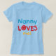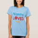 Nanny Kärlek Me T-shirts, kort, klistermärken, kostymer och annat med färgstarkt rött, gult och blå text och hjärtdesign. Nanny Kärlek, mina kläder och presentartiklar gör nanny le!