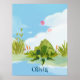 Cute mamma och pappa grog och spädbarn sitter under Lotus löv. Färg är pastel och ser ut som en vattenfärgsmålning. Den här utskriften kommer att göra alla barn eller spelrum ljusare. Det kan vara personlig.