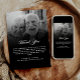I tider av förlust är detta minneskort ett värdigt och uppriktigt sätt att uttrycka er tacksamhet till dem som har framfört sitt deltagande och stöd. Kortets framsida innehåller ett foto av din älskade, överlagrad med "In Loving Memory" i ett modernt kalligrafiskript i eleganten och deras namn och livslängd. Kortets baksida visar ett andra foto som tonas in i svart med "Tack" i elegantens moderna kalligrafi-skript, följt av ditt personliga tack. Kortet är designat för att få mottagarna att känna sig erkända och uppskattade för sin empati och sina gester av löslighet. Det är en tankfull avslutning av den formella sorgeperioden, perfekt för att skicka ut efter en firande av livet, begravning eller minnesstund. Detta tackkort är inte bara ett tecken på tack utan också en omhuldad påminnelse om den person som samlade alla. ditt djupaste tack med det här tidslösa svarta och vita tackkortet.