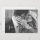 Den här eleganten sparar datumkortet med ditt personliga foto med ett romantiskt, vitt skriptöverlägg och ett modernt marmor som ser bakåt.