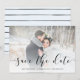 Den här eleganten sparar datumkortet med ditt personliga foto med ett romantiskt svart skriptöverlägg.