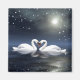 Två svanar i en vacker midnattslampa där nacke bildar en romantisk hjärtmagnet