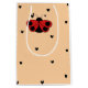 unique ladybug with heart tipped antenna, black heart polka dots two tone bag
