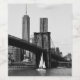 En segelbåt som passerar under Brooklyn Bridge vid Öster River, New York City.