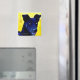 En coola magnet med ett sött hund ansikte och ord "Kärlek Loyalty Assionship".