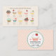 Ett sött sätt att belöna dina mest lojala kunder! Markera varje kunds besök på bageriet och belöna dem med en gratis cupkaka eller ett annat lager efter tio inköp. Yummy och söt bakeriförmånskort med olika jordgubbsprodukter, choklad och vaniljliknande muffinsar med sprinkler, blomformad isbildning och jordgubbar på ett parkerings synfält. Pastel färg bidrar till detta belöningskort. Anpassa kortets framsida och baksida med din egen formulering. Perfekt till konditorikonsten, bageriägaren eller någon som börjar sälja sina egna bakade varor. Art © Chrissy H. Studios, LLC. Alla höger reserverade.