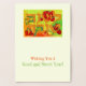 Rubinröda äpplen i en äng av ljusa gröna och gula, med ett elegant guldfolieomslag. Denna fantastiska Rosh Hashanah-hälsning kommer att stjäla showen!