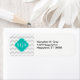 Lt Grått Wht Chevron Teal Quatrefoil 3 Monogram Returadress Etikett