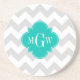 Lt Grått Wht Chevron Teal Quatrefoil 3 Monogram Underlägg Sandsten