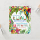 Luau-inbjudningar med vacker akvarell tropisk papegoja och flamingos på en färgrik tropisk blomma och blad bakgrund. Denna tropiska luau-födelsedagsfest-inbjudan är lätt att anpassa för ditt evenemang genom att helt enkelt lägga till dina uppgifter. Du kan också ändra bakgrundsfärgen på framsidan av denna vackra akvarell-luau-inbjudan.