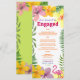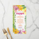 Lägg till tropisk stil till din fest med detta luau-förlovning festmeny-kort, med färgglada hibiskusblommor, frodiga ormbunkar och en lekfull rosa flamingo. Helt anpassningsbart med din evenemangsmeny, namn och datum, det är den perfekta detaljen för en hawaiiansk tema, strand eller bakgård förlovningsmiddag. Koordinerar med hela luau-inbjudan för en sammanhängande look.
