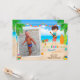 Foto Luau-födelsedagsinbjudan Luau inbjudan till Hawaii. Kute bjuder på Hawaiianska stil på en flickfödelsedag med brunettpojke med gitarr, surf, tropisk strand och blått hav, aloha-tecken och lite tropiskt party-utrustning. Du kan bara redigera den här användan på menyn Anpassa.