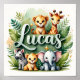 Vacker daghemsdekanter med charmerande baby-safari-djur och tropiska löv med namn Lucas på en framträdande plats. Skapar en varm, äventyrlig perfekt för varje barns rum. Högkvalitativt redo för ramning. Tillgängliga anpassade namn - meddela mig om du vill ha mer information!
