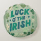 LUCK O THE IRISH Round pillow featuring shamrocks and a couple of paw print
