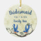 Bridesmaid Blommar, Lucky Bluebird Grönt Lövs och Beige Ivory Tan Snöre Love Bird Bröllop Ceramic Ornament. Romantisk Elegant och Whimsical Bridesmaid, Maid of honor, Flower Girl, Budens mamma, Mor of the Groom, Grandmor of the Bride, Granny Chic Bröllopsfest Favors