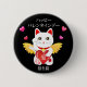 Cute och humous Maneki Neko (Lucky Cat) cupid med vingar som håller ett hjärta med "Kärlek" för Alla hjärtans dag. "Glad Alla hjärtans dag" och "Maneki Neko (Lucky Cat)" på japanska.