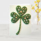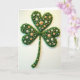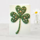 This card features a large four-leaf clover filling most of the front, each heart-shaped leaf spreading outward in neat symmetry and packed with deep green, textured foliage 💚. Tiny layered leaves and fringed edges create a rich, touchable look, like a garden arranged with extra care for someone special. Nestled across the clover are crisp white daisies with golden centers, soft blush blossoms, small orange star-shaped accents, and a few rounded blue-and-white decorations that feel like sweet little surprises ☘️. Soft light comes from the upper left, giving the clover gentle highlights and casting faint shadows onto a smooth cream background. The overall setting stays simple and airy, letting the clover and flowers take center stage like a quiet gift left on a doorstep. A short St. Patrick’s Day greeting sits near the top in green lettering, with a smaller line beneath it in a lighter shade for contrast. Along the bottom edge, a few orange stars and blue-and-white round accents trail off beside the last daisy against the cream backdrop.
