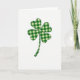This design shows a single four-leaf clover centered on a bright white background, with four heart-shaped leaves that feel like they’re leaning in toward each other like close friends. Each leaf and the slim stem are filled with a green-and-cream gingham pattern, like a picnic cloth you’d spread out for a sweet St. Patrick’s Day moment 💚. A thin, dark outline traces the clover’s edges, keeping the shape crisp against all that open white space. There are no characters or scenery beyond the clover, but the heart-like leaves suggest a gentle, romantic touch, as if luck and affection are wrapped into the same symbol ☘️. The text “Happy St. Patrick’s Day” sits above the clover in dark green, centered and easy to read. A smaller line of text rests below the stem in a lighter green, aligned to the middle like a quiet note. The overall layout stays simple and airy, with the patterned clover as the clear focal point against the white field.