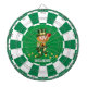 Lucky gnome med guld konetti och hjärta på emerald grönt och White Dart Board. Text kan vara personlig.