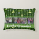 "Lucky Grandpa" S:t Patricks dagskudde. Anpassa den här charmerande designen så att en tursam farfar kan visa upp sin barnbarn. Perfekt för ett nytt, modernt, modernt estetiskt. Cute-schampor, fyralöv klöver, blommor och löv som arrangeras i rand utgör detta härliga mönster. Vackra gröntar och gulter med muterade blues gör detta till en levande men sofistikerad och öga-fångstdesign. Anpassa den här kudden med sex (6) foton - tre (3) på framsidan och tre (3) på baksidan. Anpassa texten längst fram och bakåt. Byt farfar till Pappa, Gramps, Pop, Grandad, Abuelo, Papaw eller namn.