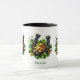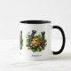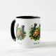Ett mugg med en S:t Patricks Dag-bild. Ett svart och guld sitta i en säng av grönt klöver med glansigt guld mynt.