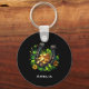 Nyckelkedja med en "St. Patrick's Day"-temabild. Ett svart och guld sitta i en säng av grönt klöver med glansigt guld mynt.
