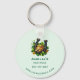 Nyckelkedja med en "St. Patrick's Day"-temabild. Ett svart och guld sitta i en säng av grönt klöver med glansigt guld mynt.