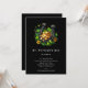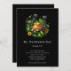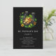 Partiinbjudan med en temabild från St. Patrick's Day. Ett svart och guld sitta i en säng av grönt klöver med glansigt guld mynt.