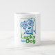 Njut av din jumbo kopp av joe med Lucky Hund Rädda djuren! Få din morgon att börja med den här stora vita mugg med Lucky Hund-logotypen.