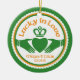 Irländsk grönt, orange och vit "Lucky in Kärlek" Claddagh St. Patrick's Day eller Irish bröllop eller bröllopsdag till minne av juldagen. Namn och bröllop kan vara personlig. Gör vår första jul tillsammans till en underbar prydnad för ett irländskt par.