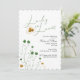 Lucky i Kärlek inbjudningskort för möhippan med kalligrafi av elegant, grönt och guld och fyrklövra vilda blommor. Perfekt för vår möhippa med grönt, St Patricks eller irländskt tema.