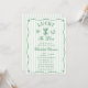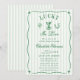 This design features soft vertical green stripes, graceful scalloped borders, and iconic lucky motifs including a four-leaf clover, horseshoe, and martini glass—symbolizing good fortune, love, and celebration. The elegant script and serif typography combination creates a polished look that’s ideal for garden bridal showers, spring brunches, country club events, outdoor luncheons, or Irish-inspired celebrations.