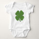 Många små klöver dekorerar denna stora fyra löv klöver eller schamprock som är sitta på vit bakgrund.