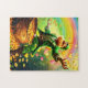 En glad leprechaun som är klädd i en ljus grönt rosar guld mynt, omgiven av färgstarka hjärtan och en vibrerande regnbåge. En gryta med guld ligger nära, symboliserar tur och välstånd. Digital Art Photoshop CS6