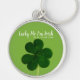 Lucky Irish St. Patrick Day Grönt Shamrock Rund Silverfärgad Nyckelring