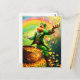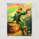 En glad leprechaun som är klädd i en ljus grönt rosar guld mynt, omgiven av färgstarka hjärtan och en vibrerande regnbåge. En gryta med guld ligger nära, symboliserar tur och välstånd. Digital Art Photoshop CS6