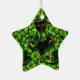 Celebrate the luck of the Irish with this whimsical snowflake ornament featuring a festive black cat dressed as a dapper leprechaun. This ornament captures the kitty mid jig against a vibrant backdrop of four leaf clovers and green top hats
