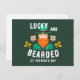 Lucky och Bearded St. Patrick's Day Leprechaun St. Patrick's Day Postcards. Firar St. Patrick's Day i stil med det här festliga vykortet med en leprechaun-design! Den djärva skäggiga leprechaun, klädd i ett traditionellt kostym och top hat. Den lekande texten "Lucky and Bearded!" lägger till en humoristisk perfekt för alla som kärlek irländsk kultur, skjortor eller bara lite lycka till.