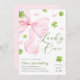 Celebrate the joyous arrival of a little girl with our sweet "Lucky One" birthday invitation. This charming card features soft, classy St. Particks day theme shamrocks and a beautifully illustrated pink bow.