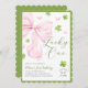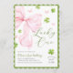 Celebrate the joyous arrival of a little girl with our sweet "Lucky One" birthday invitation. This charming card features soft, classy St. Particks day theme shamrocks and a beautifully illustrated pink bow.