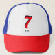 Tur sju är jag Hat. Sju är i rött och svart färg. Text och nummer kan anpassas!