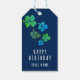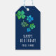 Green Blue Lucky Shamrock Clover Happy Birthday Gift Tags. Four green and blue hand-drawn shamrocks on a navy blue background. Clovers with four leaves for the luck. Add your name.