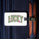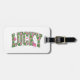 En djärv och festlig ord-konstdesign med ord LUCKY i stora block brev. Insidan av varje brev fylls med grönt schampar på rosa, dekorerade med ytterligare rosa klöver och gnistor. En glad och snyggt perfekt för St. Patrick's Day firande.