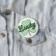 Den här roligten och festive-knappen har en grönt och vit schamprock med texten stil som säger "Lucky" i ett tryckt grönt. Perfektens tillbehör till St. Patricks Day eller visning ditt irländska Tur år runt!